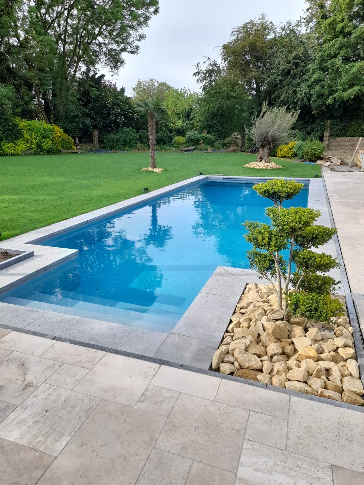 Votre piscine est à sa place dans votre jardin en une seule journée. Votre installateur peut procéder directement à la finition et au raccordement avec le local technique.