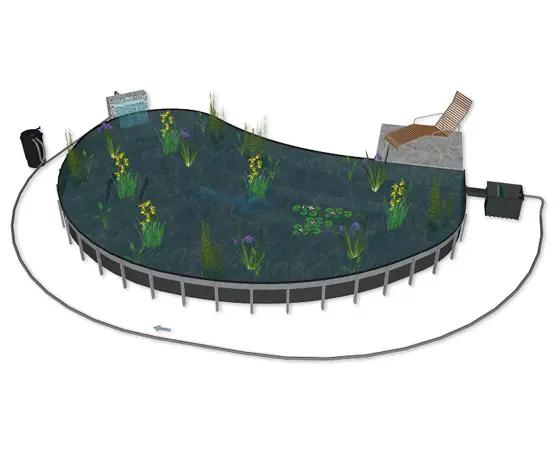 Les étangs décoratifs sont des systèmes simples à construire, qui nécessitent des connaissances limitées. En fonction du volume d'eau souhaité, il est possible de sélectionner le filtre à pression correspondant et la pompe associée. La tuyauterie est constituée de tuyaux flexibles, qui peuvent être raccordés aux techniques à l'aide des colliers. Le filtre à pression nécessite un entretien limité. Les éponges filtrantes doivent être rincées tous les quinze jours pour éliminer la contamination. La lampe UV-c intégrée empêche la croissance des algues flottantes.